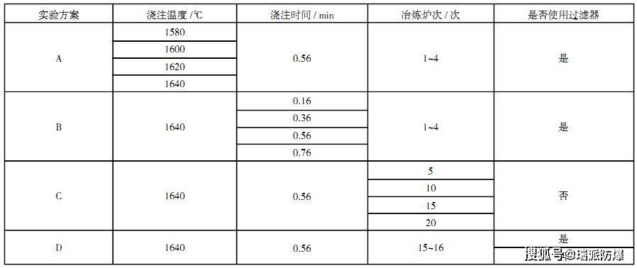 為了探究上訴四種因素對(duì)鐵鉻鋁合金鑄錠表面扒皮厚度及內(nèi)部縮孔缺陷的影響程度并確定鐵鉻鋁合金更佳冶煉工藝,設(shè)計(jì)了A~D共4種實(shí)驗(yàn)方案,詳見(jiàn)下表。